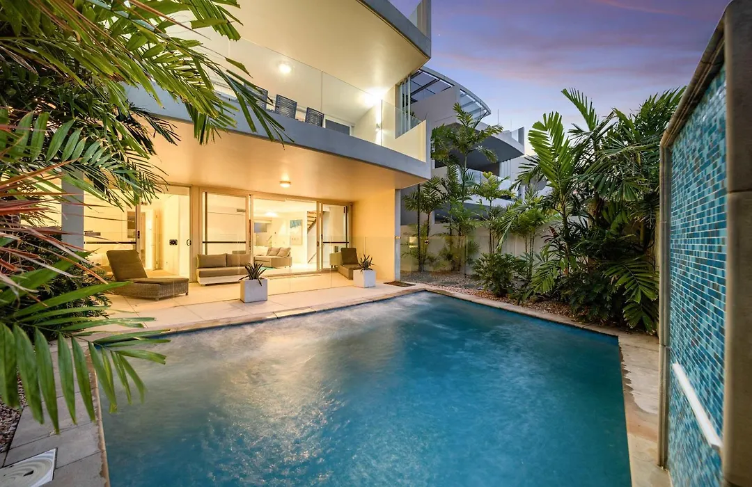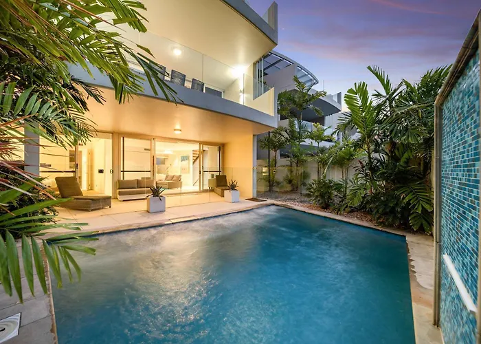 The 3-bedroom Absolute Beachfront Marcoola - Private Pool - Private Spa Bath - Games villa entices guests to enjoy cycling and fishing and is located 3.2 miles from such natural sites as Chambers Island. Located about 15 minutes by car from Sunshine Castle, the holiday home boasts a patio with views of the sea.